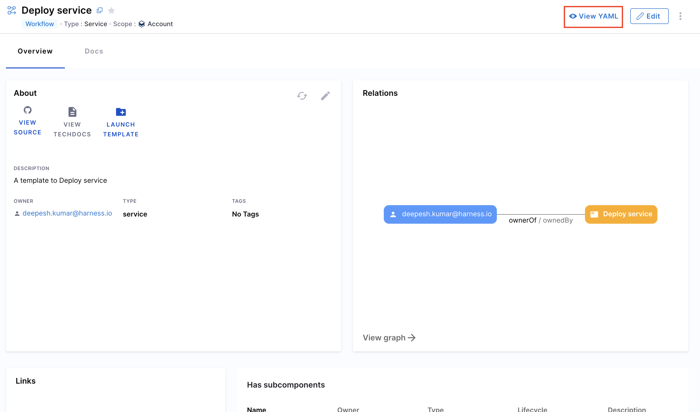 1. From the Catalog, select the desired Workflow and click View YAML.