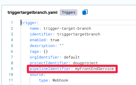 In this case, we save the pipeline YAML as ./harness/myFrontEndService/myFrontEndService.yaml.