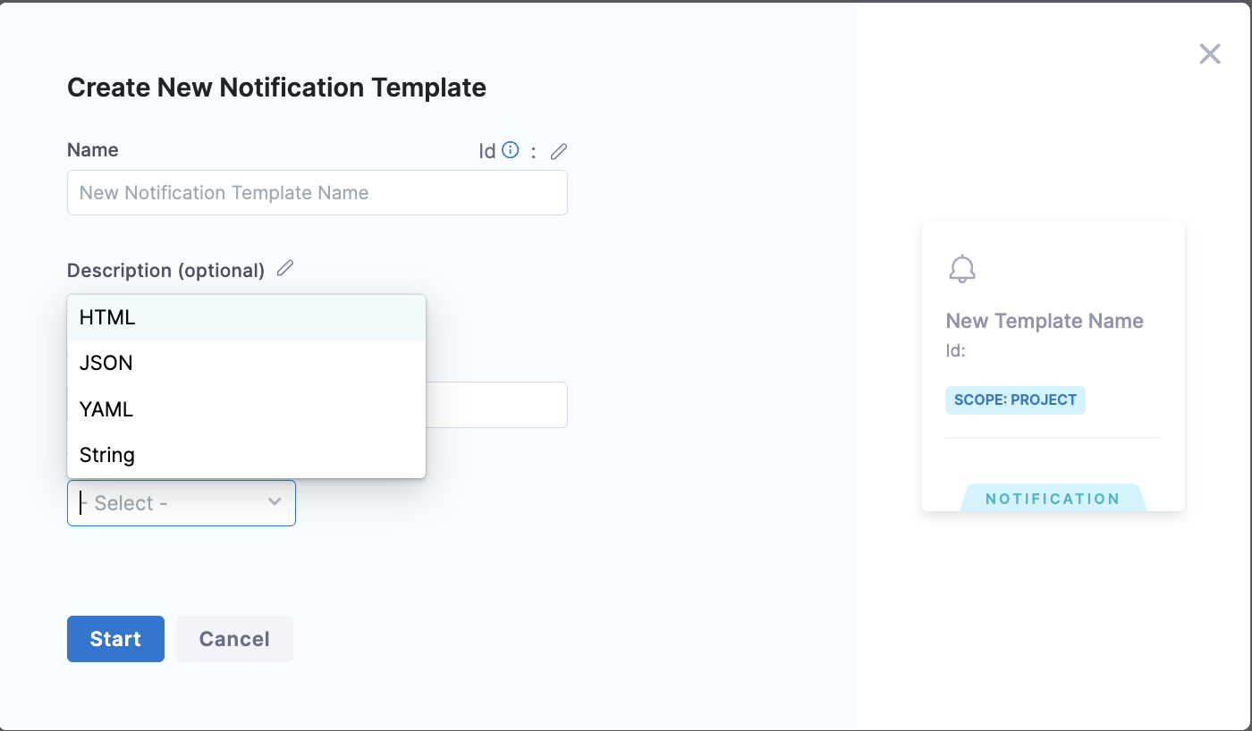 You can create custom notification templates at the following scopes: Account, Organization, and Project.
