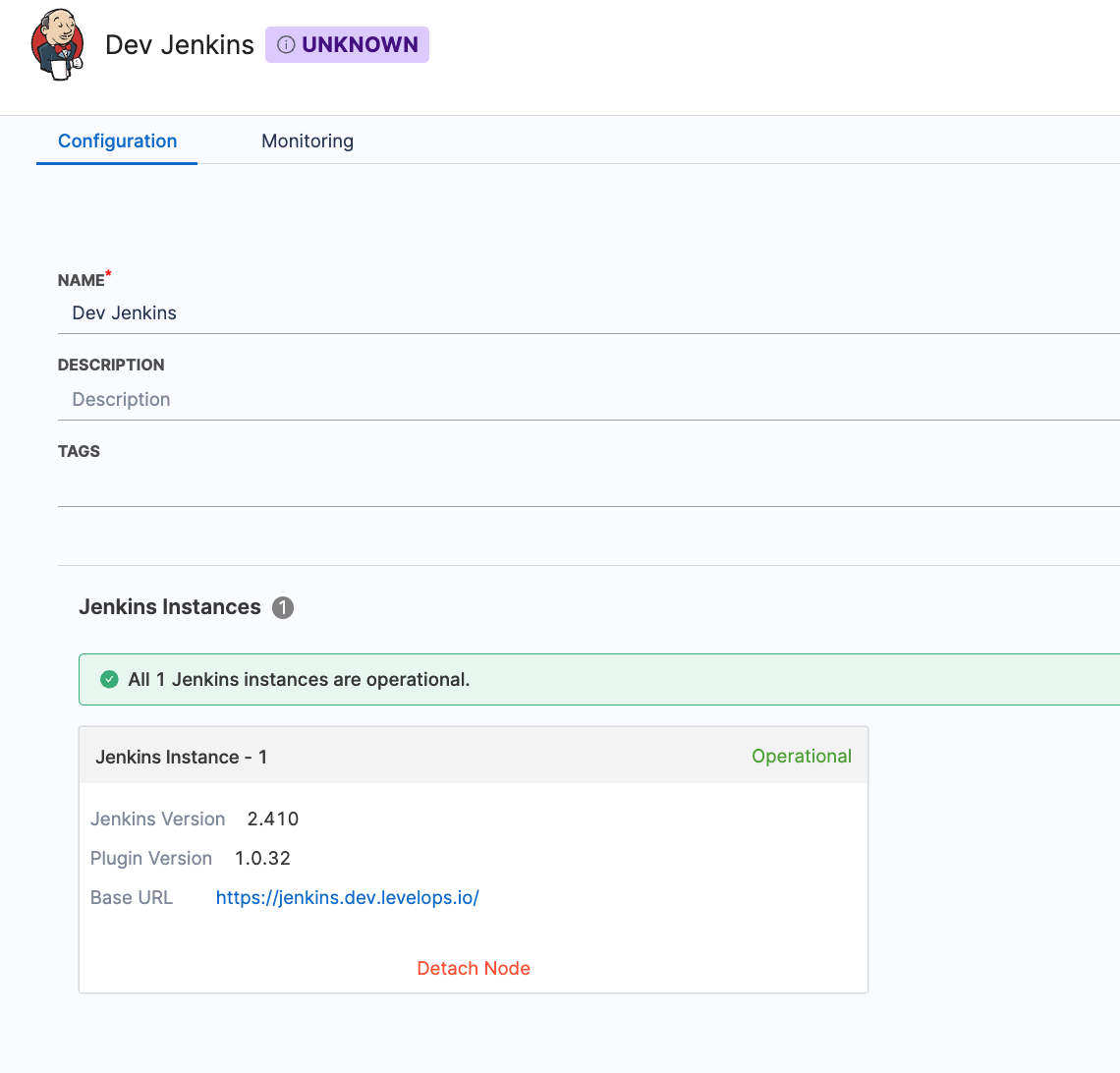 After reconfiguring the plugin, it may take 10 to 15 minutes for the Jenkins integration instance to establish a connection. Once the connection is successful, the status of the Jenkins integration instance will change to Operational.