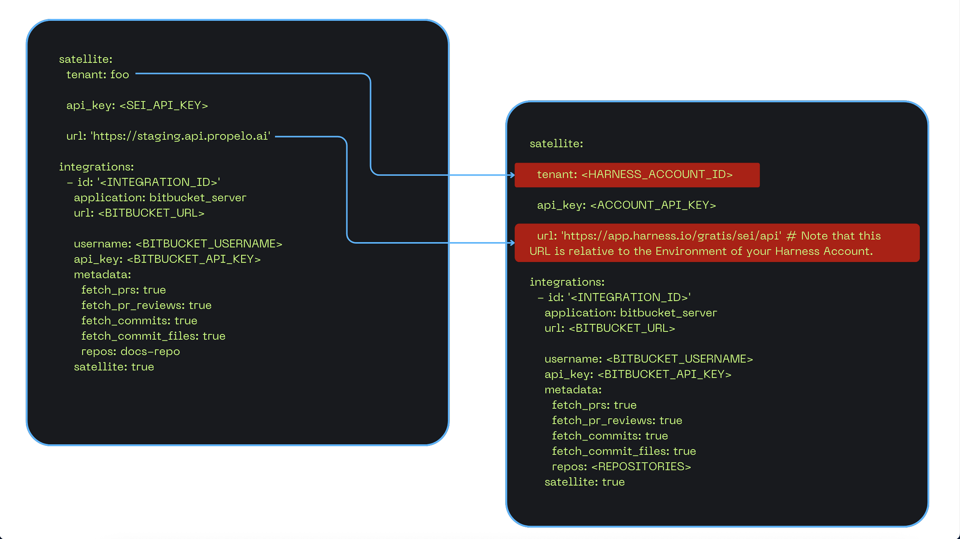 satellite.ymlfile, replace the existing Propelo Account ID in the tenant field with the new Account ID of your Harness account. You can find this ID in the Harness account URL. - Update the Base URL to match the appropriate environment: