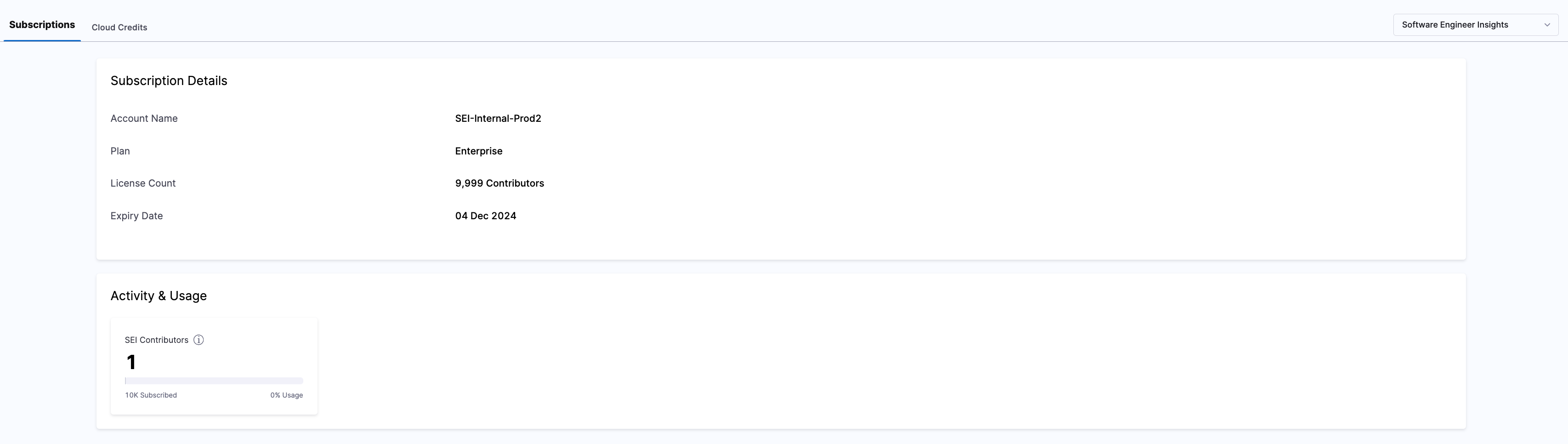 Subscription and licensing details can be accessed in your Harness Account settings. All licenses for SEI are provisioned and enabled at the Account level.