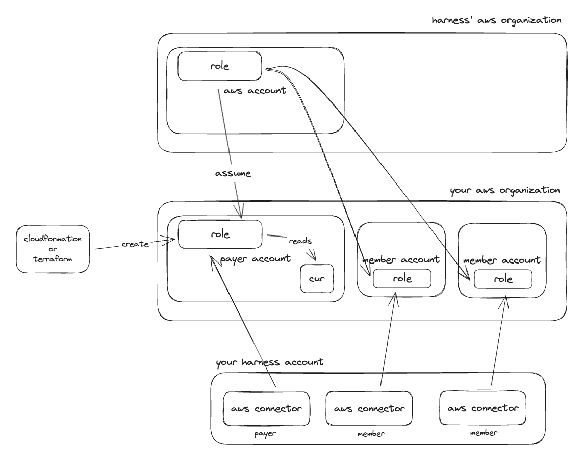 Now that the CUR and role have been created in the payer account we need to create a corresponding CCM AWS connector in your Harness account to start billing data ingestion.